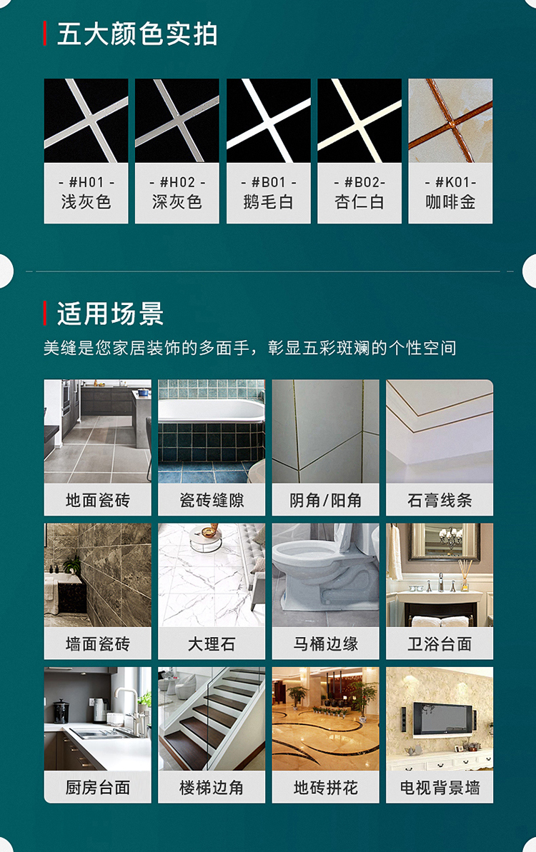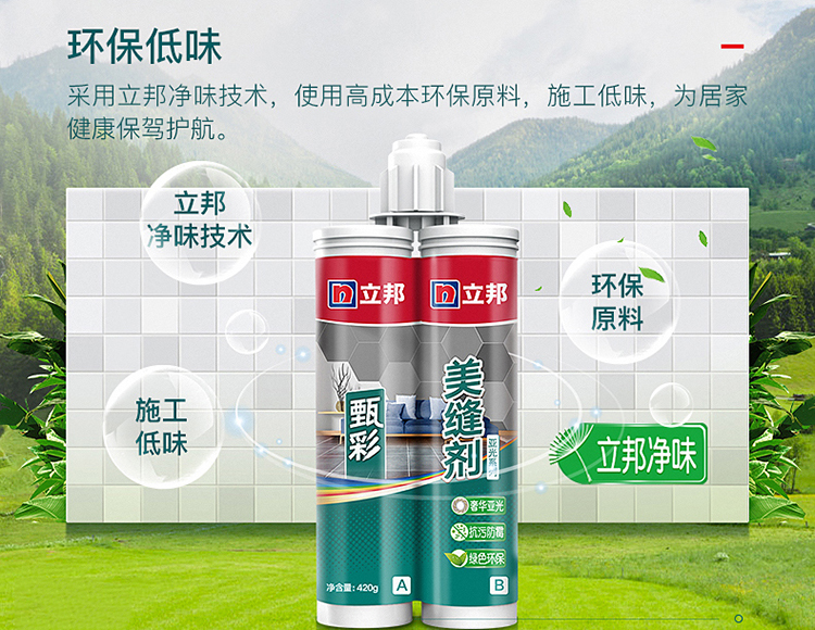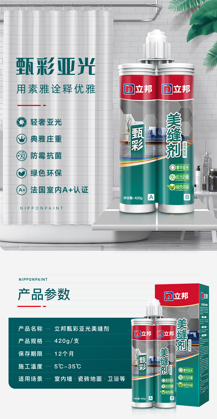立邦亞光美縫劑:抗劃抗?jié)B,精選進(jìn)口高密度環(huán)氧樹脂原料,擺平劃痕,污漬不易滲透。