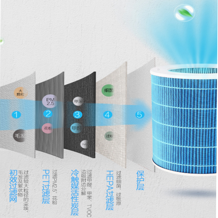 美的空氣凈化器HEPA濾網(wǎng)層過濾細(xì)菌、過敏原。