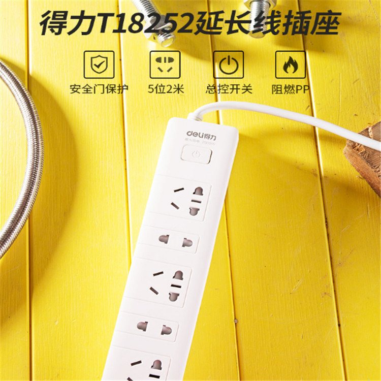 得力插座家用延長(zhǎng)線插座2米電拖接線板多功能