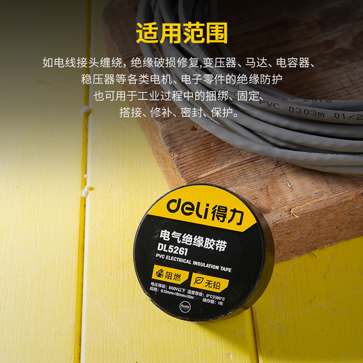 寧波得力電氣絕緣膠帶DL5271電線膠布PVC絕緣防護工具