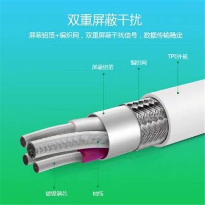 公??拐蹟鄶?shù)據(jù)線屏蔽鋁箔+編織網(wǎng),雙重屏蔽干擾信號(hào),數(shù)據(jù)傳輸穩(wěn)定。