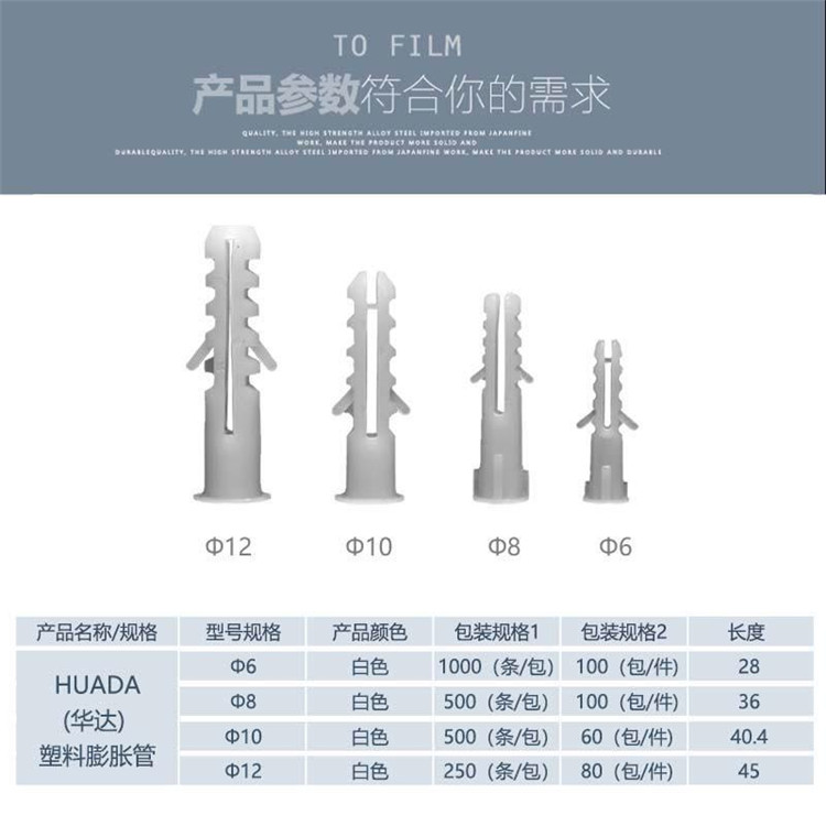 HUADA(華達)塑料膨脹管:堅固耐用,曲線膨脹、錨固力更強。