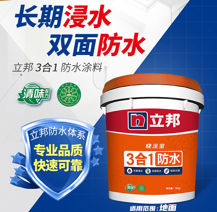 立邦 3合1防水漿料18KG立邦3合1防水、綠色環(huán)保、具有良好的抗?jié)B性。