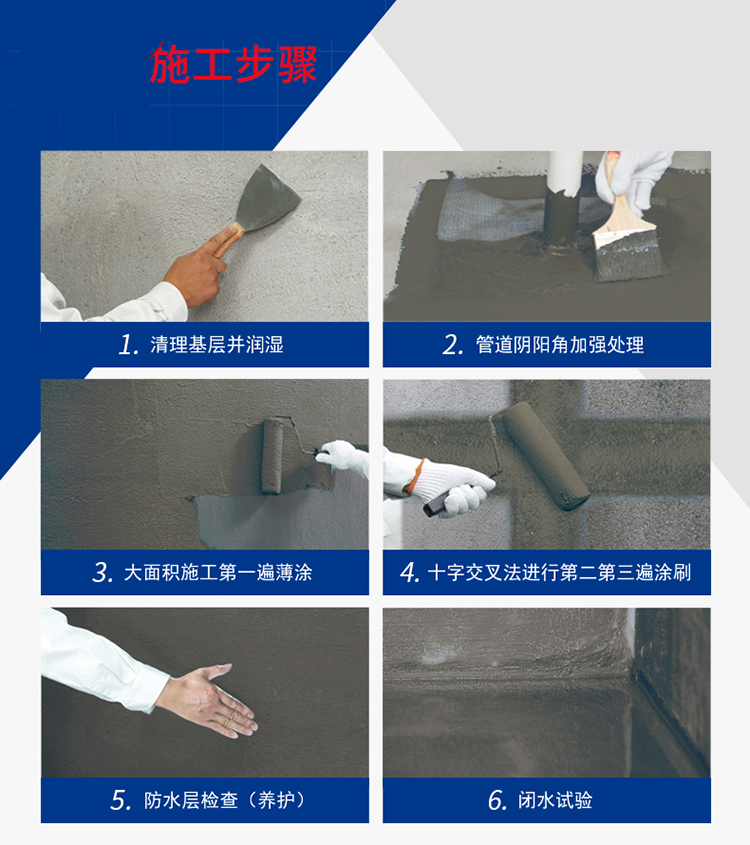 2、對(duì)于陰陽角和管道部位應(yīng)在施工前使用立邦水不漏預(yù)先處理成圓弧或鈍角,并用彈性防水配合無紡布或玻纖網(wǎng)格布加強(qiáng)處理;
