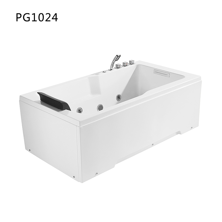 白色亞克力浴缸,一體式裙邊,帶氛圍燈,五件套龍頭,旋鈕式去水。