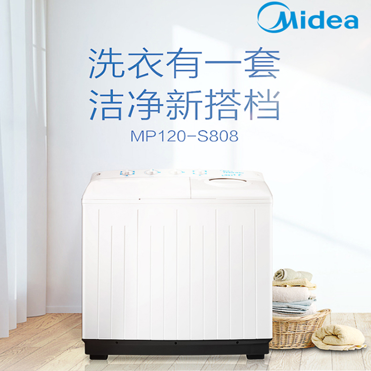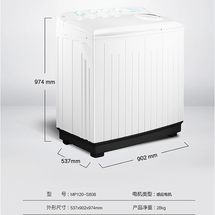 美的 Midea 洗衣機半自動 12公斤大容量 雙桶雙缸 強力洗滌 MP120-S808