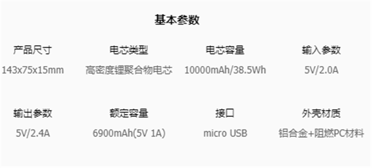 公牛小巧迷你移動(dòng)電源基本參數(shù)圖