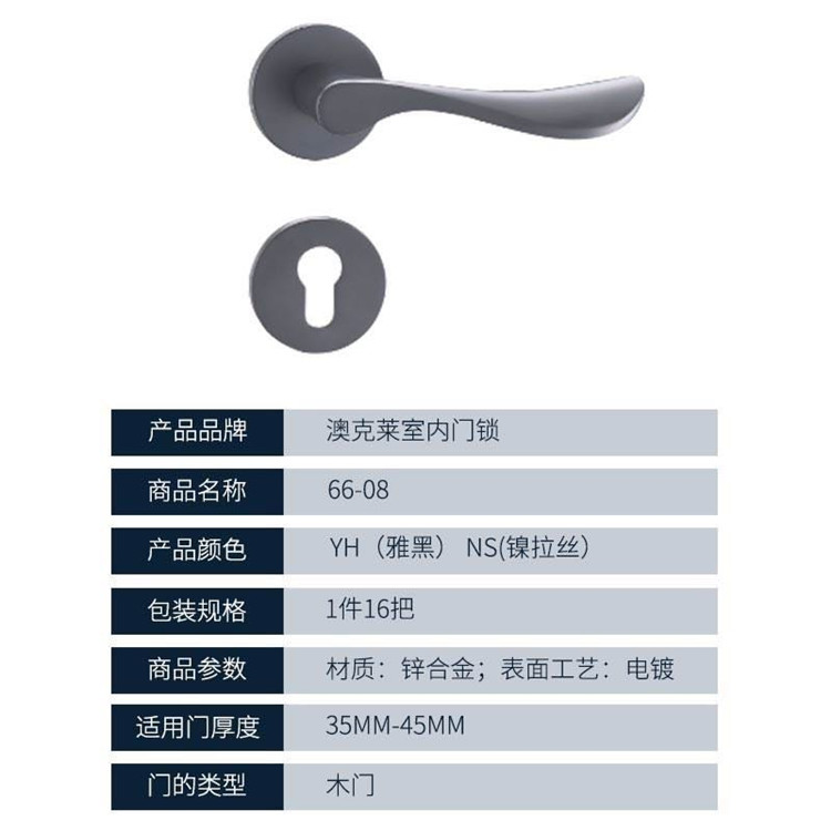 奧克萊 室內(nèi)門鎖66-08:采用優(yōu)質(zhì)鋅合金材質(zhì)。