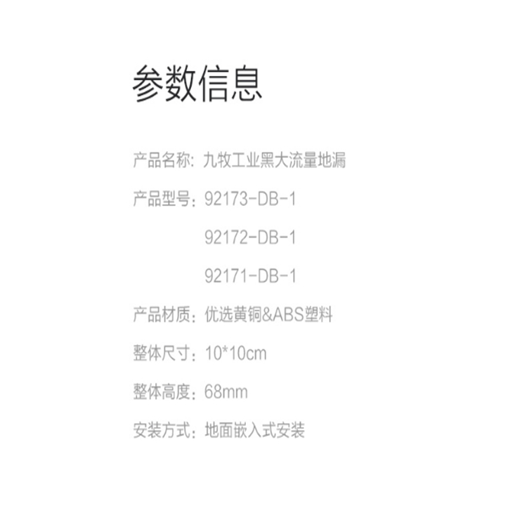 - 型號名稱工業(yè)黑淋浴地漏92173