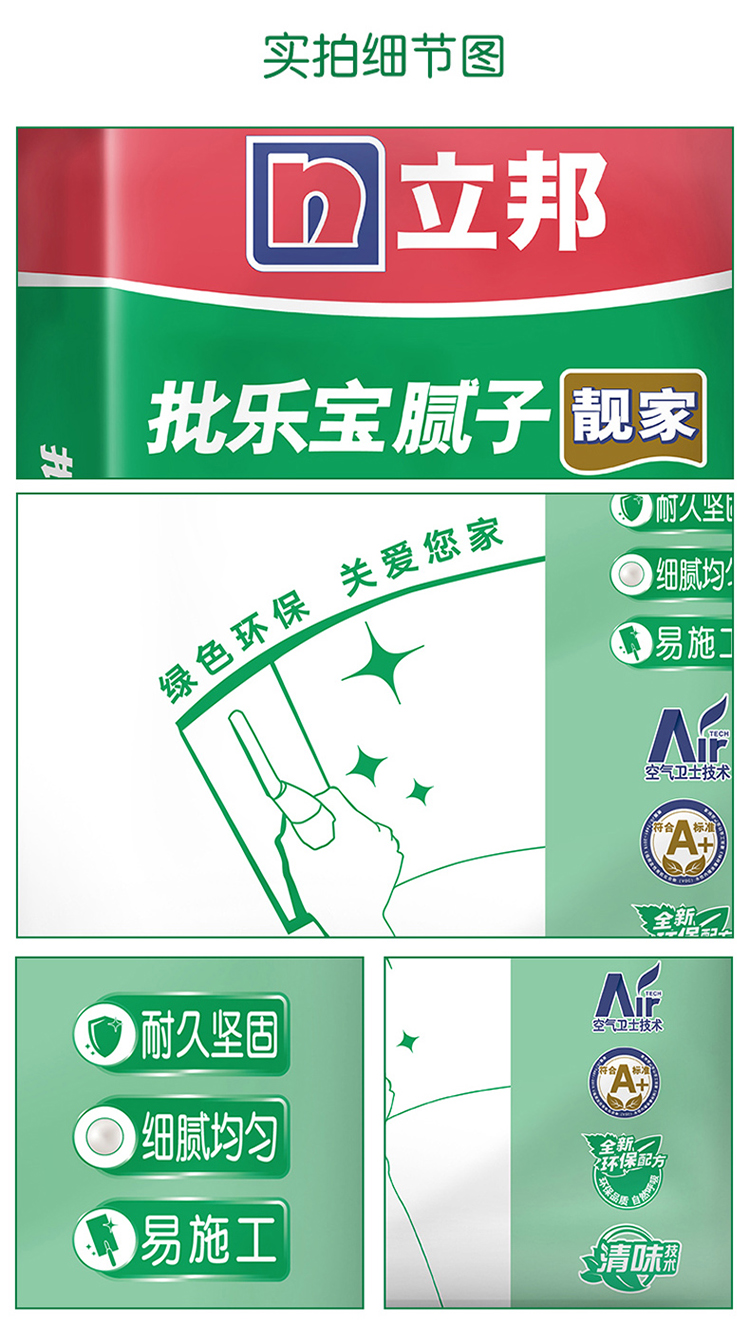 立邦 批樂(lè)寶靚家膩?zhàn)?/strong>3大功效:耐久堅(jiān)固、細(xì)膩均勻、易施工。