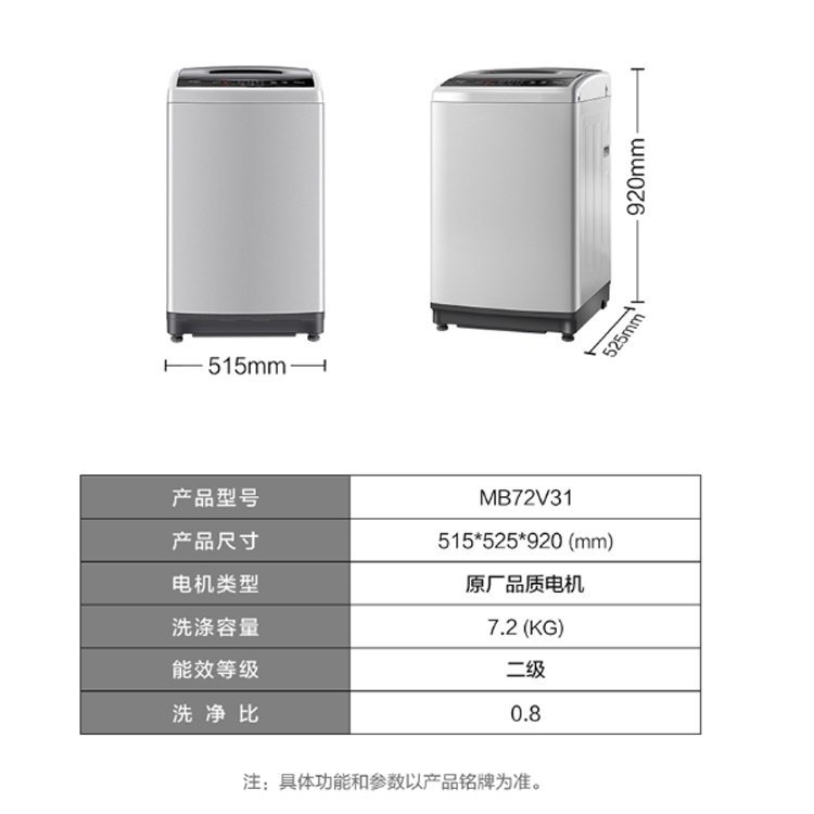 美的(Midea)波輪洗衣機(jī)全自動 7.2公斤 專利免清洗十年桶如新 MB72V31