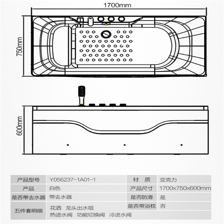 加厚亞克力浴缸 Y056系列人性化的臺階設(shè)計,可以滿足不同身高的使用,