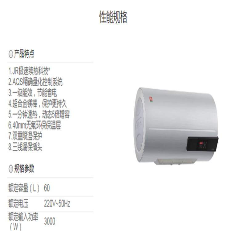 櫻花SEH-6015A JR系列電熱水器電熱水器儲(chǔ)水式速熱電熱水器產(chǎn)品參數(shù)