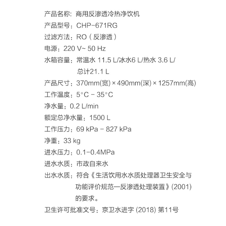 JOMOO九牧 大容量返滲透四級深度過濾冷熱凈飲機CHP-671RG