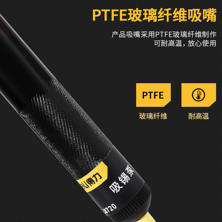 吸錫泵吸嘴采用PTFE玻璃纖維制作可耐高溫,放心使用
