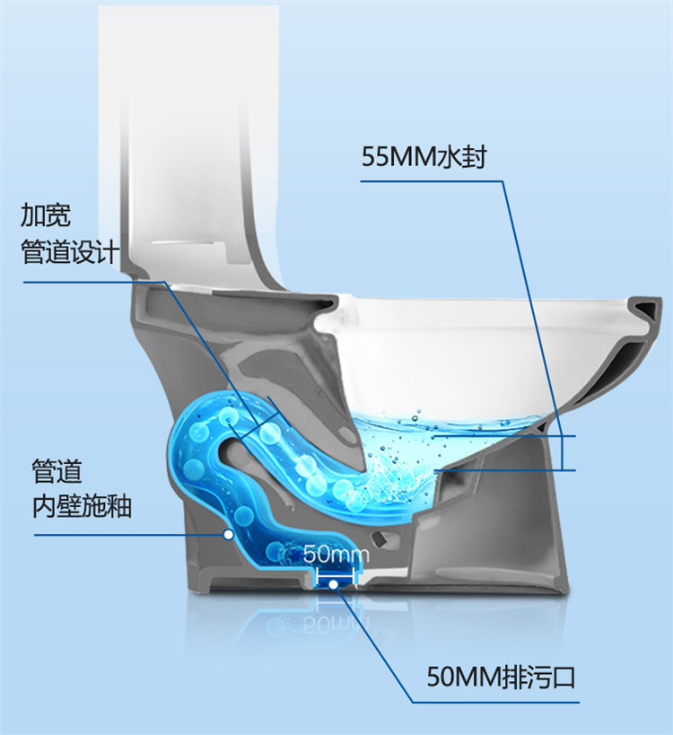 水虹吸式馬桶坐便器套裝1MM釉面厚度大于國家標準,隔離防污體系