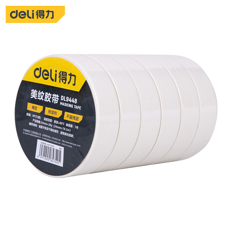 得力美紋膠帶(黃)裝修遮蔽美紋紙膠帶無(wú)痕紙貼膜工具