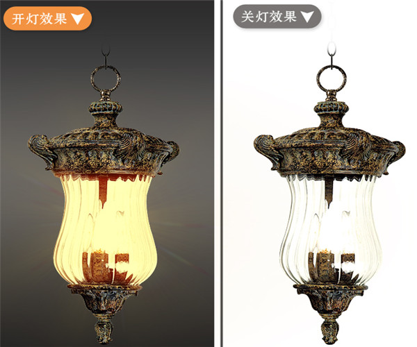 帝之苑戶外吊燈DH-3212S/M走廊燈開燈、關(guān)燈效果圖