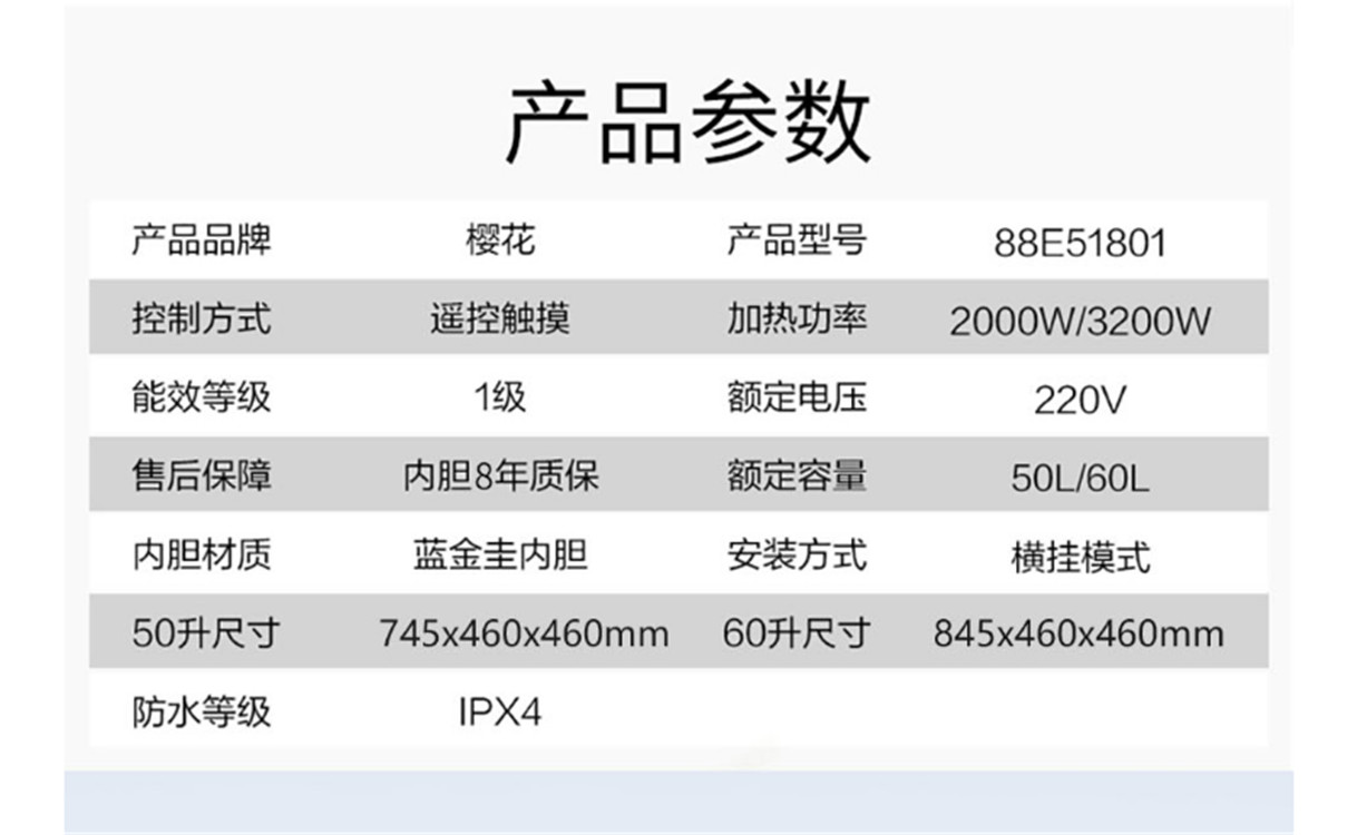 櫻花88E51801速控系列電熱水器儲(chǔ)水式速熱電熱水器產(chǎn)品參數(shù)