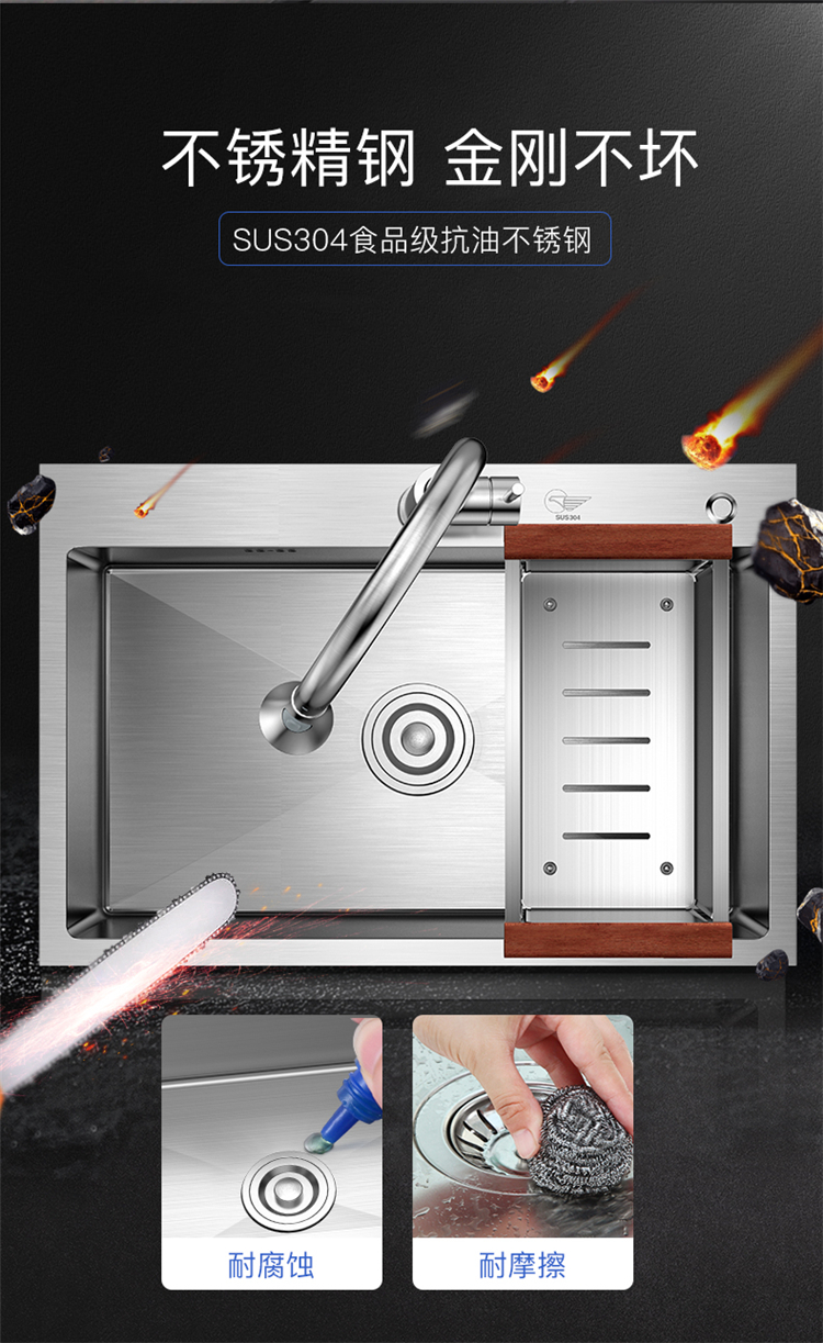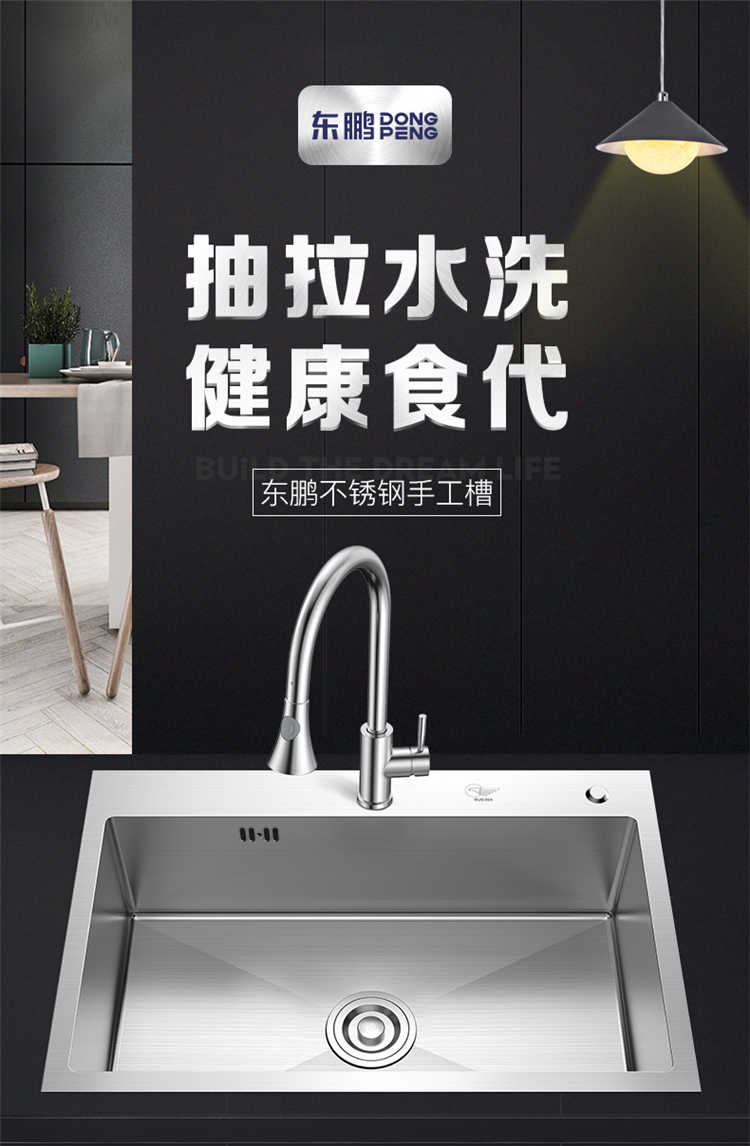 - 型號(hào)名稱手工大單槽+抽拉龍頭