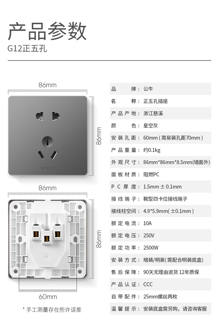 開關(guān)插座面板86型直五孔插座公牛品質(zhì) 內(nèi)外兼修