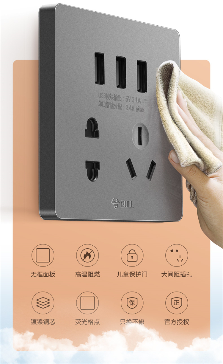 插口內部均有防誤插保護門,單邊自鎖防止兒童玩耍時接觸
