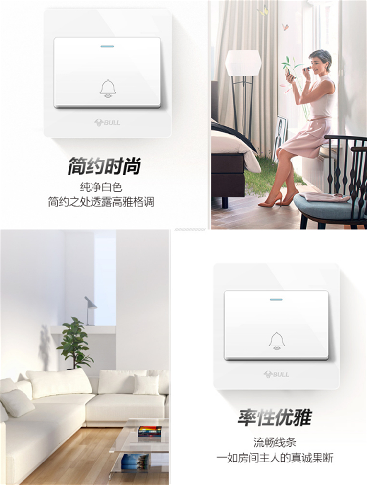 公牛(BULL) 開關(guān)插座86型一開有線叮咚客人門鈴開關(guān)按鈕客人電鈴開關(guān)G07K115Y