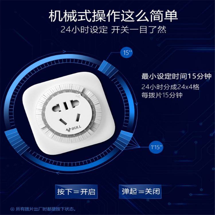 機械定時器插座機械式操作這么簡單 24小時設定開關(guān)一目了然
