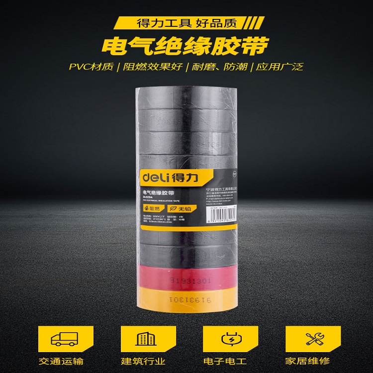 得力工具電氣絕緣膠帶電工電線膠布PVC防水耐高溫加寬型大卷黑色DL5272