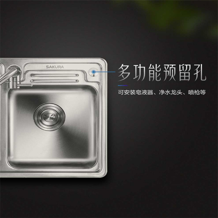 櫻花SCS-A520水槽廚房S304不銹鋼水槽洗菜盆單槽帶支撐架子大小洗碗臺(tái)盆手盆池多功能預(yù)留孔