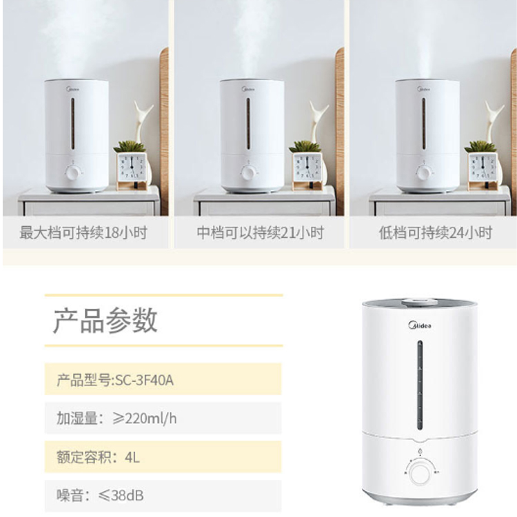 美的(Midea)加濕器加水速度提升,不易濺水,抬手就能輕松加滿。