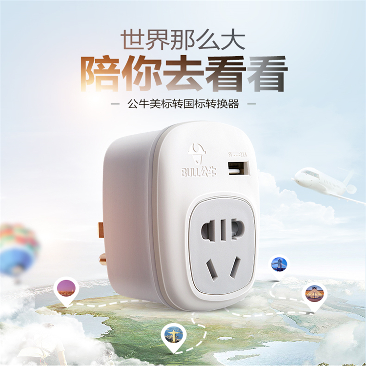 公牛轉(zhuǎn)化插頭插座 帶USB充電接口旅行電源轉(zhuǎn)換器