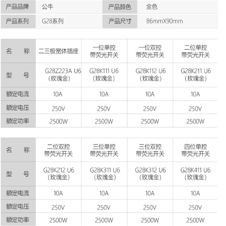 公牛(BULL) 開(kāi)關(guān)插座 G28系列 一位電腦插座 86型面板G28T102 U6 玫瑰金 暗裝