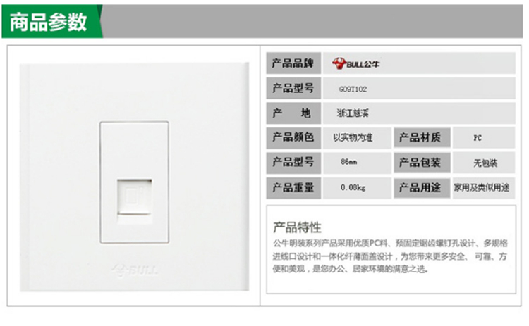 公牛(BULL) 明裝開關(guān)插座 G09系列 一位電腦插座 86型插座面板 G09T102