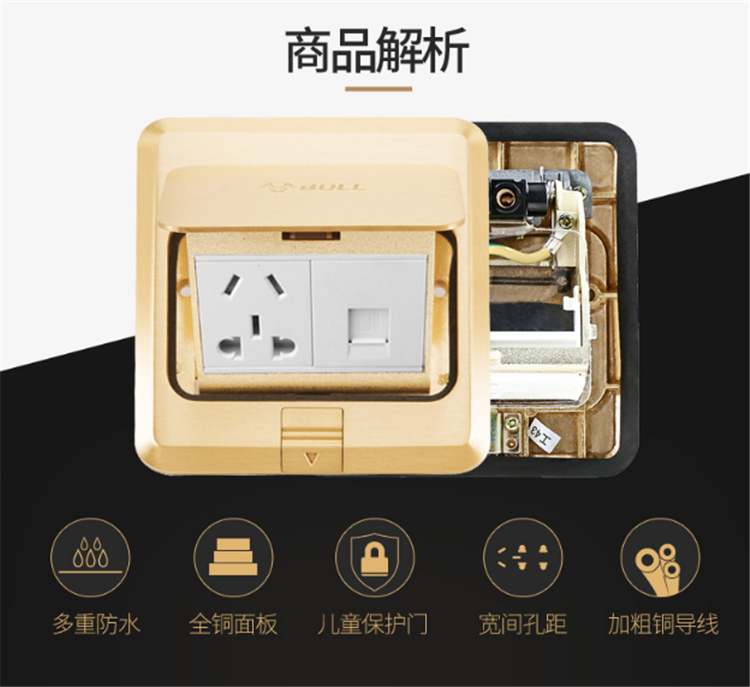 公牛(BULL)公牛地插座 全銅防水 電腦網(wǎng)絡(luò)五孔