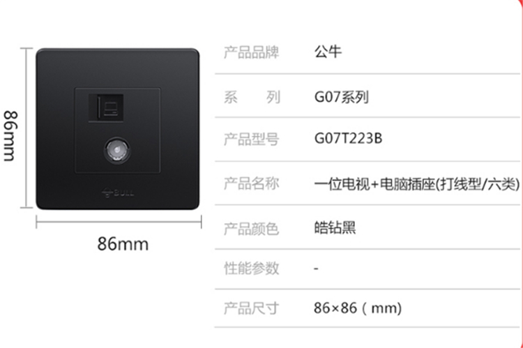 開關插座 G07系列 二位電腦帶電視打線型六類插座 86型面板G07T223B