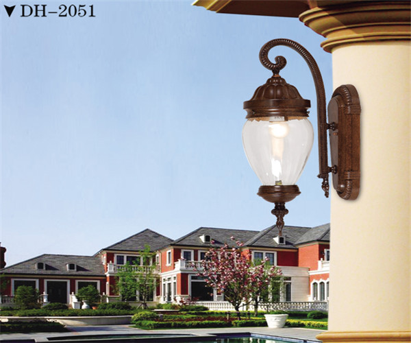 帝之苑戶(hù)外壁燈DH-2051歐式庭院燈燈具采用鋁作為燈具的材質(zhì),一次成型上蓋設(shè)計(jì),簡(jiǎn)約現(xiàn)代,防雨較出色