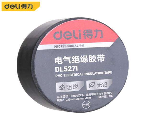 得力DL5271專業(yè)級電氣絕緣膠帶(黑)阻燃材料,使用更放心