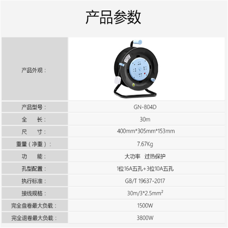過熱保護(hù)電纜卷盤插座商務(wù)品質(zhì)感