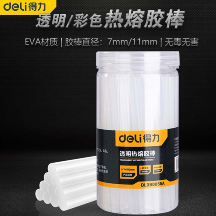 得力熱熔膠棒(桶裝),EVA材質制作,長期存放不易硬化。