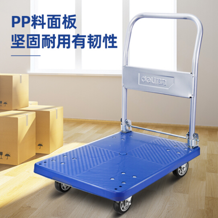 得力(deli) 折疊平板車耐用手推車拉貨車小拖車四輪搬運車73x47cm承重約300斤