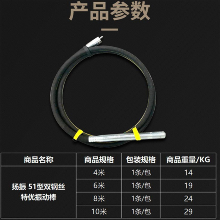 楊振51型優(yōu)質(zhì)振動棒是廣泛使用于道路、橋梁、隧道、樓層基礎(chǔ)和各種混凝土梁柱及預(yù)制構(gòu)件現(xiàn)場澆注施工的重要工具。