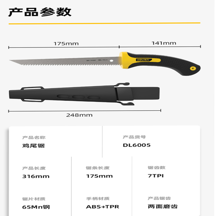 得力(deli) 雙面鋸齒腰鋸木工鋸子園林手鋸 DL6005