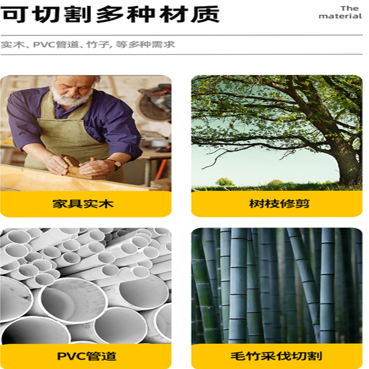 木材板切割、園林、樹(shù)木修整、毛竹采伐、PVC切割等