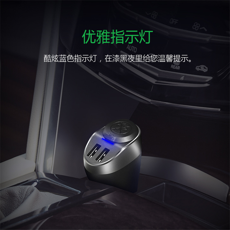 公牛汽車手機車充器優(yōu)雅指示燈酷炫藍色指示燈,在漆黑夜里給您溫馨提示。