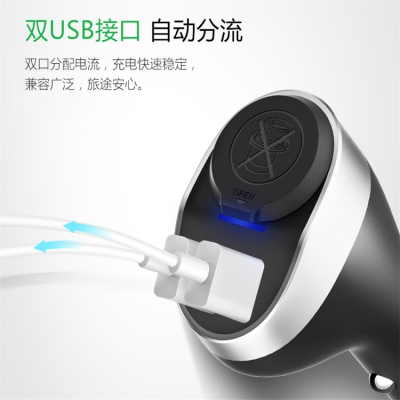 公牛汽車手機車充器雙USB接口,自動分流,充電快速穩(wěn)定,兼容廣泛,旅途安心。