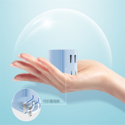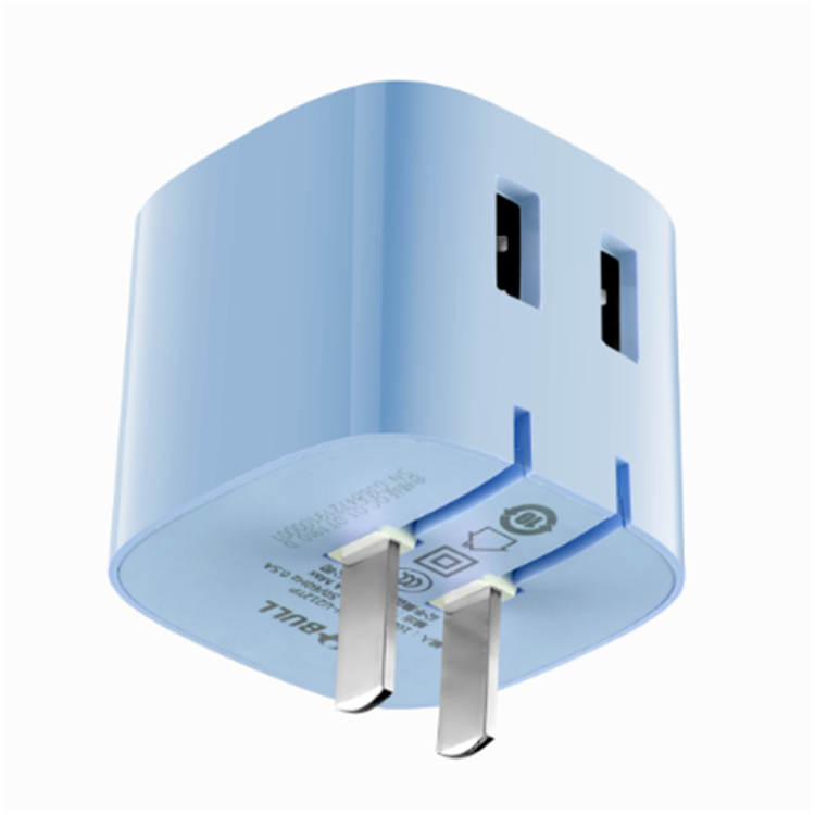 公牛自動防過充USB充電器高質(zhì)感的時尚藍,時尚且耐看,上下為磨砂觸感的啞光