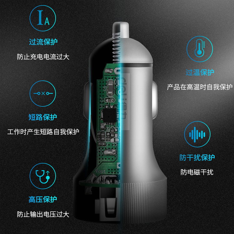 車載USB充電器多重電路保護(hù),充分保護(hù)您的手機(jī)電池和愛車