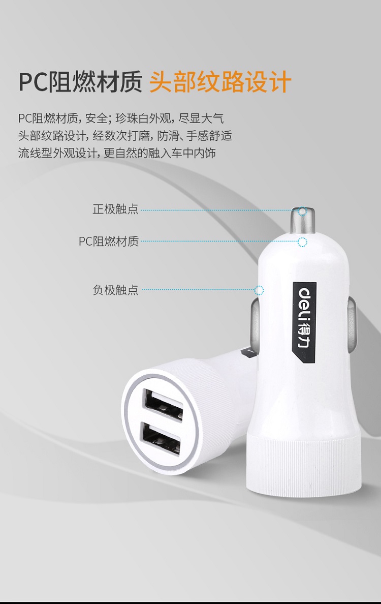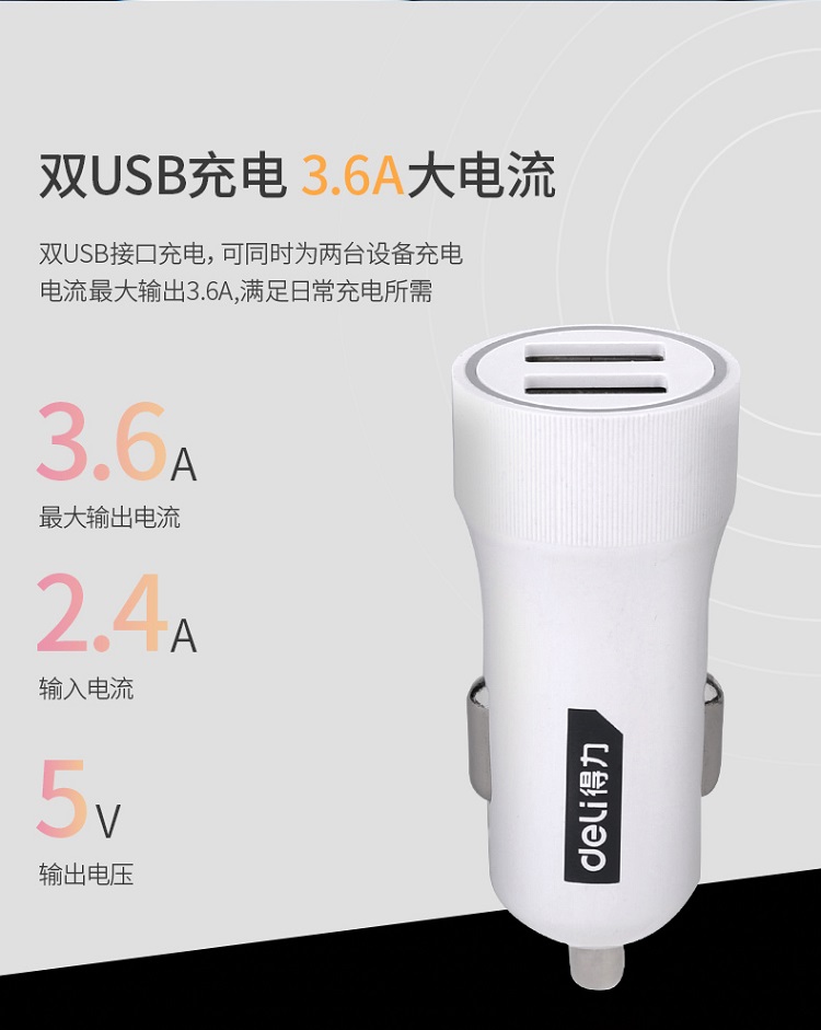 得力工具車(chē)載充電器汽車(chē)車(chē)充一拖二點(diǎn)煙器插頭usb車(chē)用多功能快充