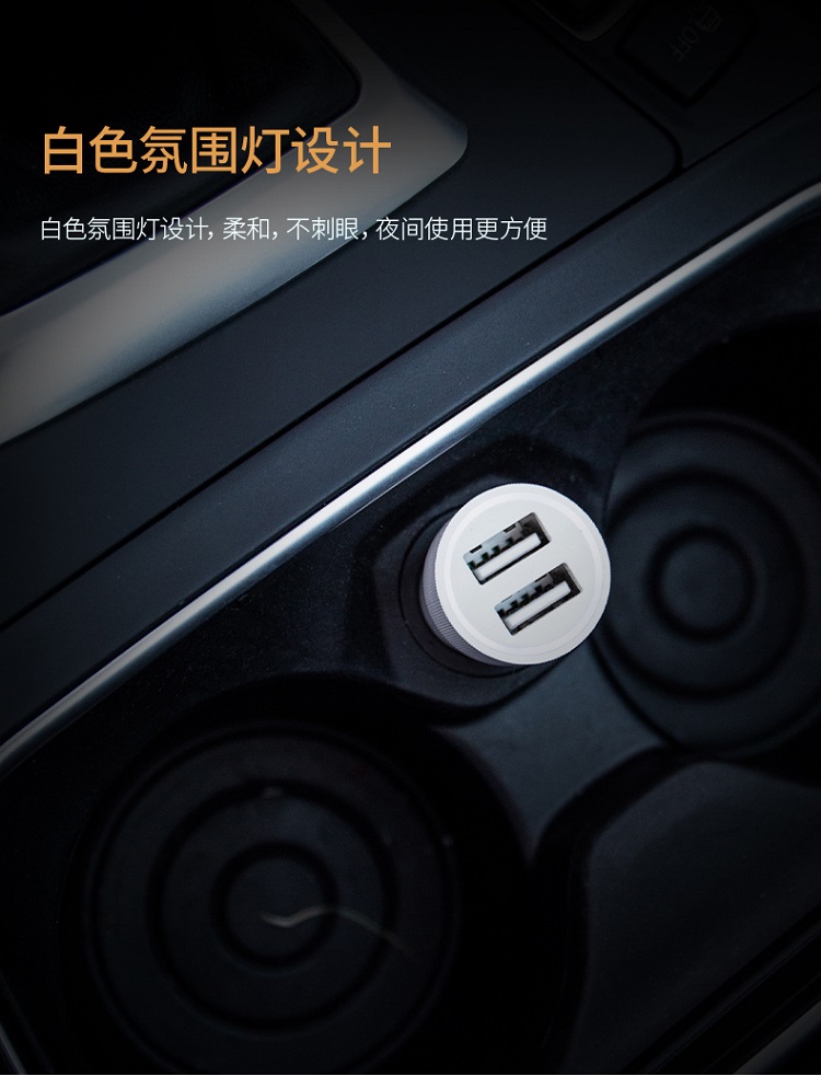 車(chē)載充電器雙USB接口充電,可同時(shí)為兩臺(tái)設(shè)備充電